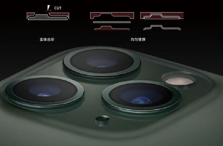 拋光:玻璃拋光本身其實并不難,而iPhone 11最難的地方就是這個攝像頭凸臺以及凸臺周圈的內(nèi)導(dǎo)角了。既要拋光又要保證弧度和立邊,在小編的CMF知識體系中,可能需要調(diào)用化學(xué)拋光(粗拋)、研磨(可能要定制拋光輪)、甚至磁流變拋光等多種手段,絕非一兩種拋光方式單獨能勝任。